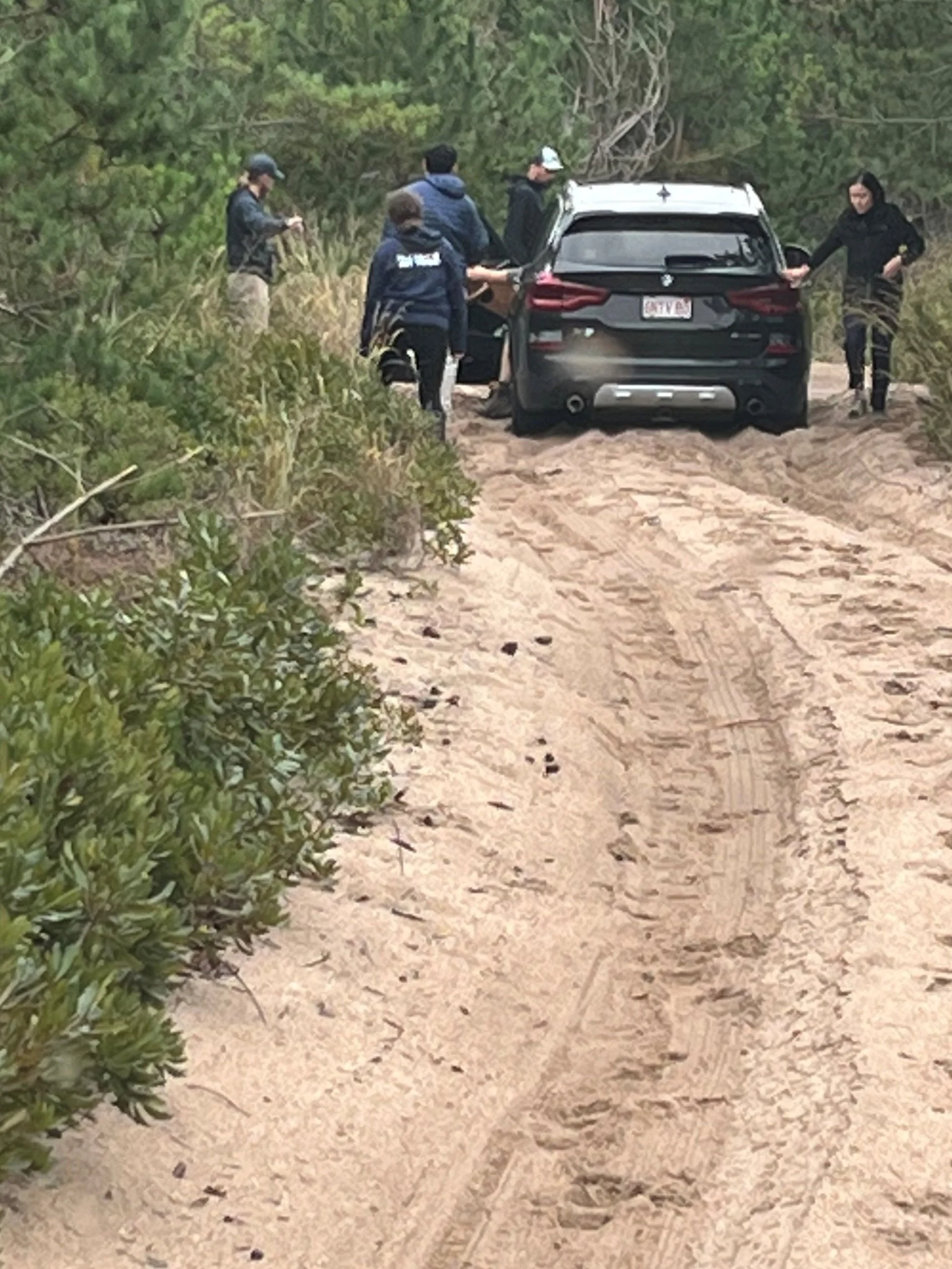These people were from Massachusetts and decided that an adventure on the East Beach trail without a CRMC permit or any equipment was a good idea. They had dug themselves about 12 inches down into the sand and were STUCK. Two rescue vehicles and 45 minutes got them free and on their way. DON’T BE THESE PEOPLE!